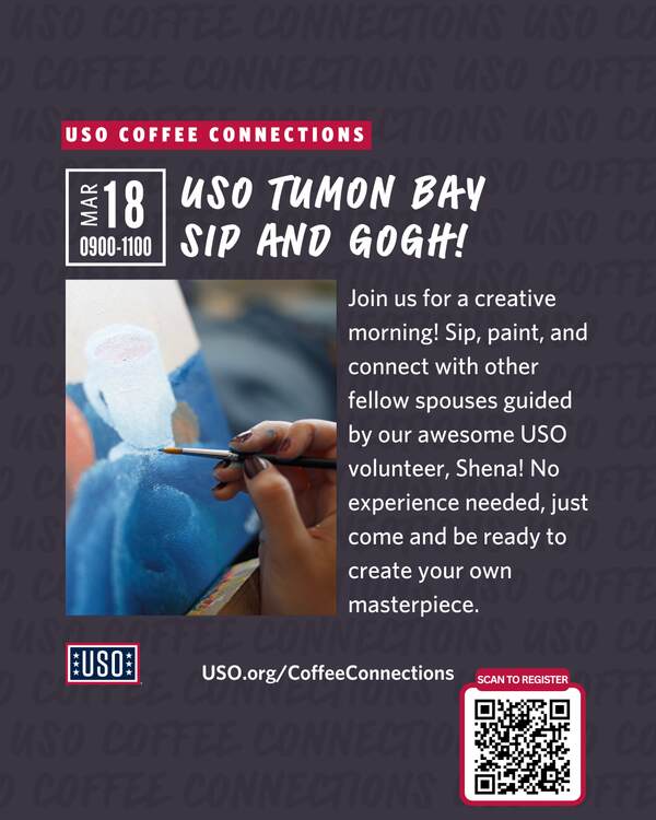 Join us for a relaxing and creative morning filled with color, connection, and inspiration! Guided by our talented USO volunteer Shena, you’ll enjoy a fun sip-and-paint experience where you can unwind, express your creativity, and create a beautiful masterpiece to take home. No experience is needed, just come ready to relax, connect with fellow military spouses, and let your imagination flow. We can’t wait to create with you!