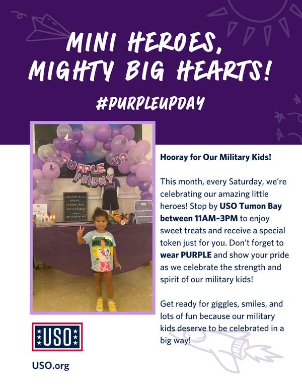 USO Tumon Bay will be celebrating our awesome military kids with Treats & Sweets every Saturday! Throughout the Month of the Military Child, we’re excited to bring a little extra fun and appreciation to our center by offering sweet treats for the amazing kids in our military community. It’s our small way of recognizing their strength, resilience, and the important role they play in supporting their military families.