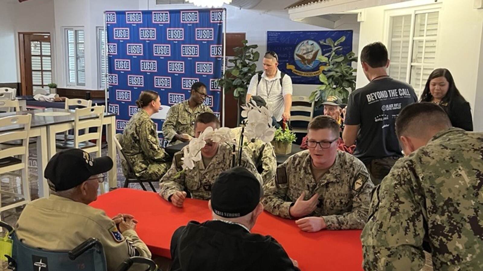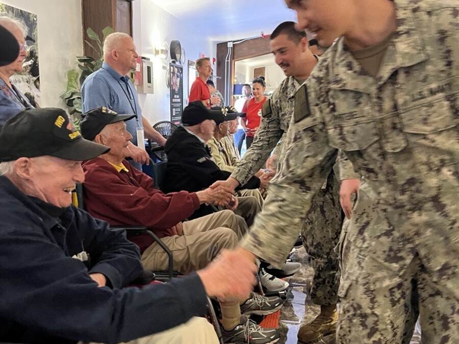 At USO Naval Base Guam, our team had the true honor of hosting a special meet-and-greet. Inside our doors, service members sat face-to-face with these heroes, sharing conversations, stories, and moments that bridged generations. In that space, the USO mission came to life, connecting today’s service members with those who have served before them.