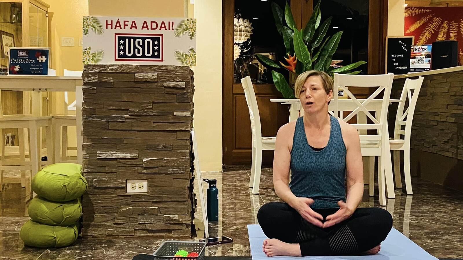 Mobility might not be widely known in the fitness world, but thanks to USO Andersen, Heather has a chance to share its importance with service members and their families. Participants often leave saying things like, “That’s just what I needed,” “My back doesn’t hurt anymore,” or “My hip moves better now.” These comments bring a deep sense of fulfillment and serve as meaningful, tangible evidence that Heather’s mobility classes are making a positive impact in her community.